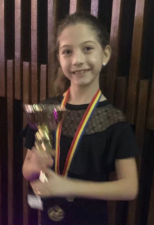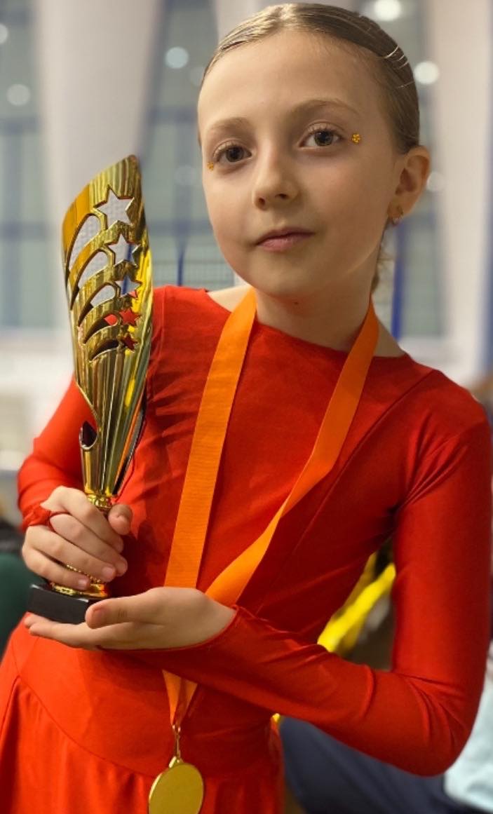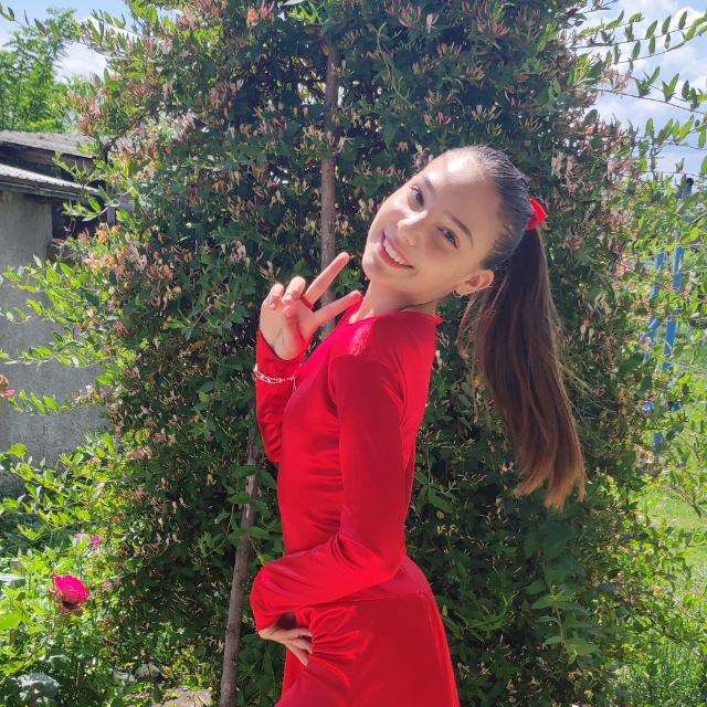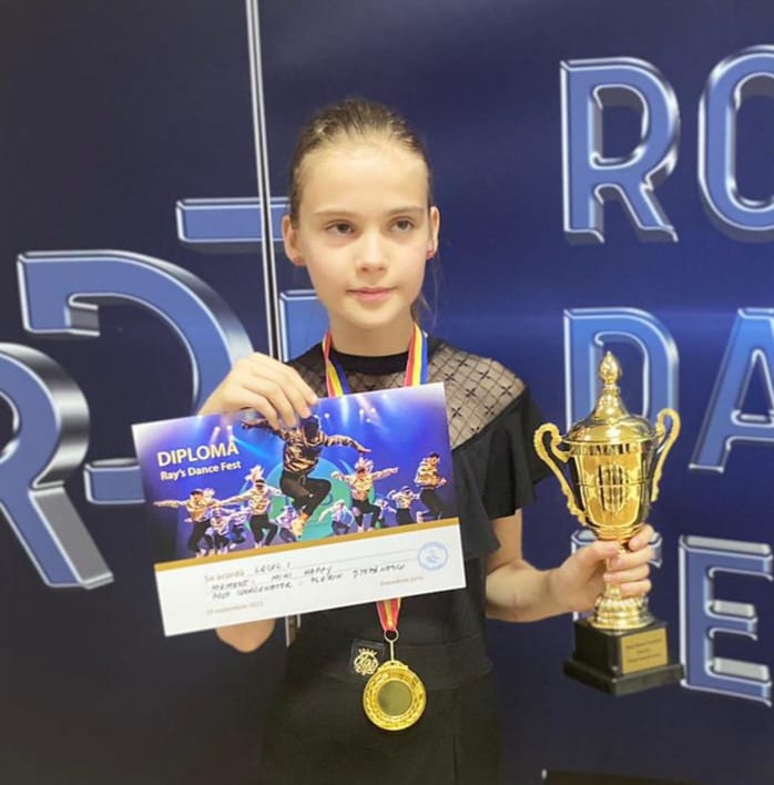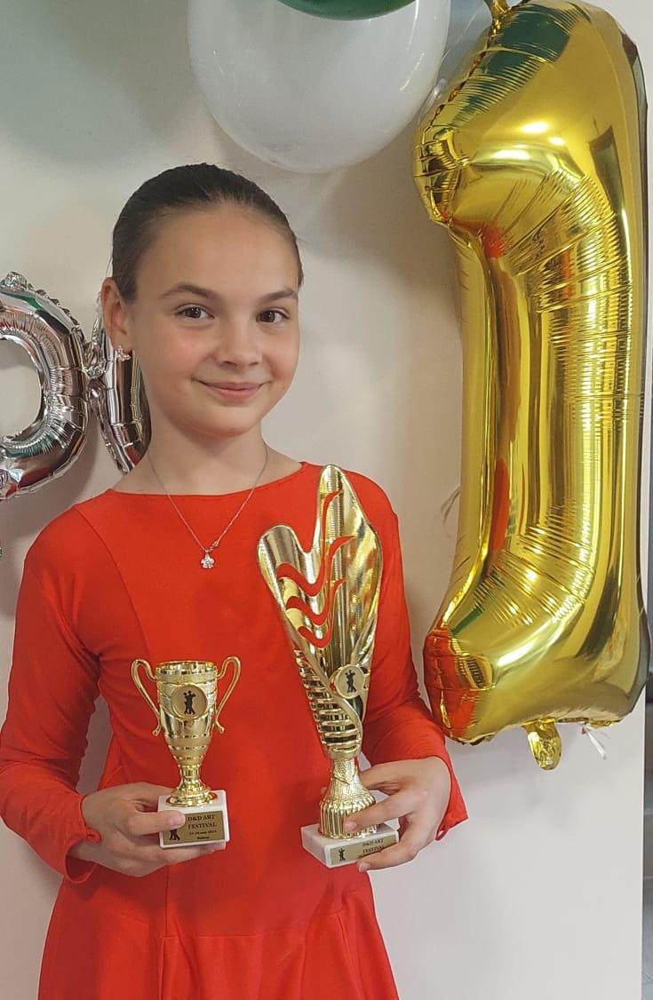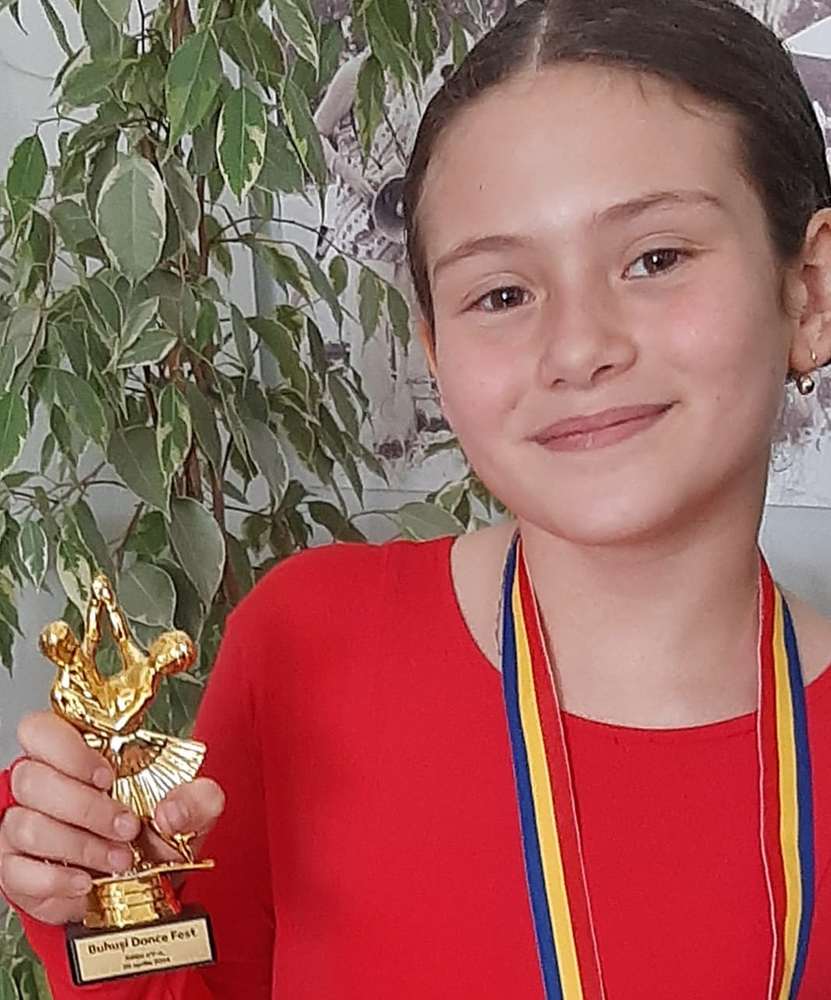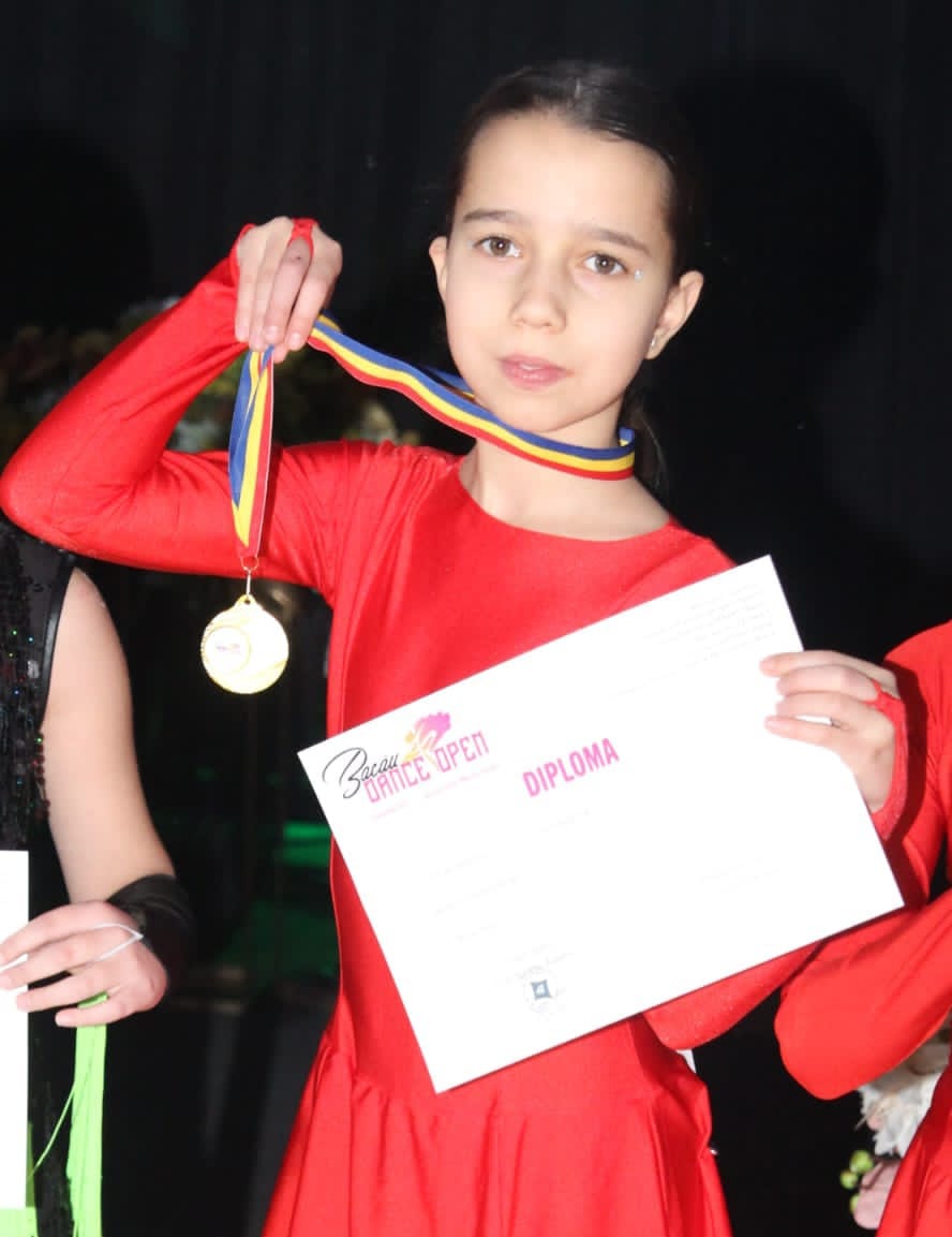 „ Eu am 9 ani și sunt elevă în clasa a III a. Am început cursurile de dans sportiv în 2019. Dansul pentru mine înseamnă fericire, bucurie, curaj, frumusețe și emoție. Am participat la numeroase competiții unde am obținut locuri fruntașe. La școală am participat la concursuri de matematică, română și engleză unde am obținut punctaj maxim. În timpul liber merg la cursuri de înot, desen și șah. Voi încerca să ajung cât mai departe.”