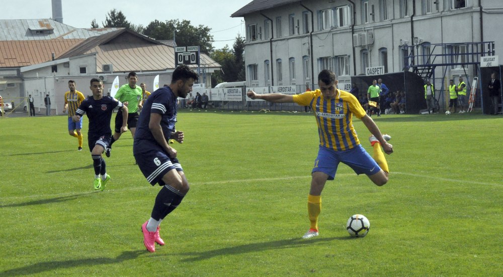 Nicio schimbare în bine. Dimpotrivă, oaspeții au avut câștig de cauză la mijlocul terenului, iar singurul lor vârf, Balint i-a bătut în cuie pe fundașii centrali ai Aerostarului, care s-au întrecut din nou în greșeli, care mai de care mai hilare. În min. 33, Balint a centrat nestingherit de pe banda stângă, iar Alexandru Popescu a reluat precis pentru 0-1.