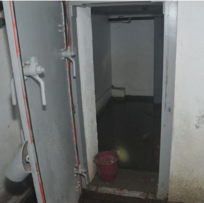 Acolo, ni s-a spus, este un adăpost aproape nefuncţional, însă la faţa locului aveam să constatăm că, de la ultimul control, situaţia s-a îmbunătăţit simţitor. Adăpostul, în oglindă, la care au acces locatarii de pe două scări, a fost luat în custodie de Mihai Filip, care locuieşte la parter şi, după o muncă titanică, a reuşit să-l igienizeze. „Este mult mai bine acum, însă nu avem lumină, am tras eu din apartament”, ne spune responsabilul adăpostului.