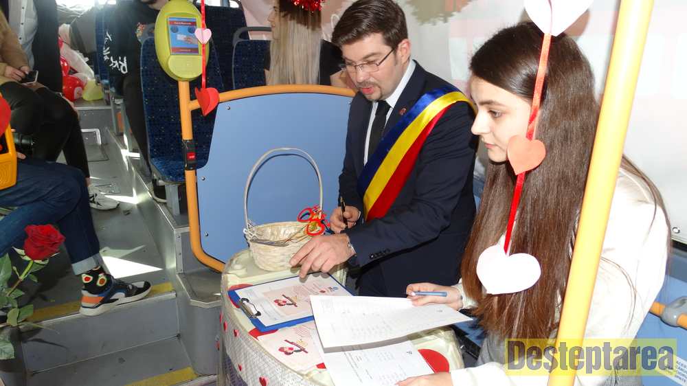 Practic, de la ora 10.00, pe traseul 22 a circulat o cursă specială în care toate cuplurile, de toate vârstele, au putut să-și declare iubirea, unii dintre ei fiind pentru prima dată în fața unui „ofițer de stare civilă”, alții având experiență și care au vrut să își reînoiască jurămintele făcute atunci când și-au unit destinele. Cu voie bună, peste 40 de perechi au trecut prin fața „ofițerului de stare civilă”, au fost de acord cu cele „impuse” și au spus „Da!”, pecetluit de un sărut și susținut puternic de un „certificat de căsătorie” valabil o zi.
