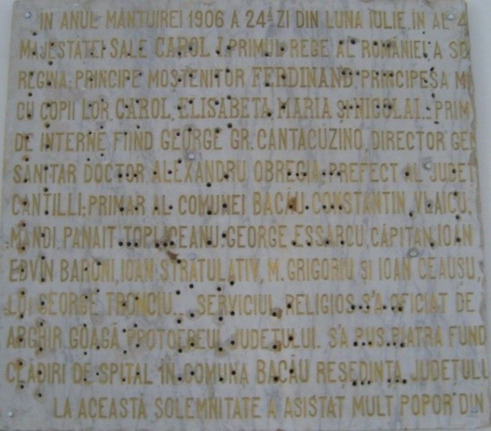 Pe baza unui împrumut de 90.000 lei, contractat de Primăria Bacău la Casa Judeţeană de Credit (septembrie 1906), administraţia locală a demarat lucrările de construcţie a noului spital comunal în zona de Sud a oraşului. Lucrările au început în toamna anului 1906 şi au fost finalizate doi ani mai târziu. Tot în anul 1906, cu ajutorul fondului testamentar de 20.000 lei, lăsat comunei de către comerciantul evreu Faivish Klein, Primăria Bacău a hotărât în şedinţa din 31 mai 1906, alături de executorul testamentar Emil Ornstein, „să utilizeze din acea sumă, 17.500 lei pentru construcţia pavilionului de boli infecţioase, pe care se va pune o inscripţie care să amintească numele donatorului; restul banilor urmau să fie utilizaţi pentru a mobila pavilionul” (din păcate, această inscripție nu mai există în prezent). La acea dată, Faivish Klein era unul dintre cei mai bogaţi comercianţi din Moldova; întreaga sa avere testamentară, atât cea mobilă, cât şi cea imobilă, întrecea cu mult bugetul comunal pe anul 1906.