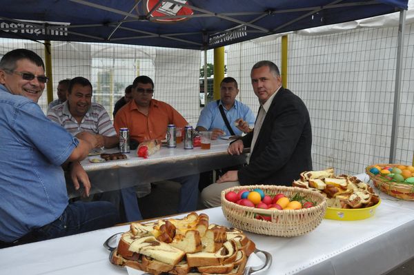 Cerul se incrunta peste toata curtea larga si din incretiturile fruntilor de nori mai picura câte un strop. Dar nimeni nu-i infricosat si glumele se insiruie mai ceva decât micii si cârnatii pe gratarul care deja a scos câteva sarje vegheate de berea bine racita. Si ce daca toate astea se intâmpla intr-o firma de transport public? Doar e sarbatoare, nu doar Inaltarea, aceste zile sunt pline de sarbatori ale tuturor transportatorilor, si e voie (daca nu intri pe traseu!) sa gusti din combinatia de care doar foarte rar ai parte intr-o saptamâna obisnuita. Soferi, mecanici, controlori, spalatori sau personal administrativ se indeamna, se cheama, isi dau ghes sa se bucure ca intre colegi, ca prietenii care-si stiu bucuriile si necazurile de multi, multi ani. In timp ce autobuzele strabat orasul ducând bacauanii unde-i cheama viata, pe strada Chimiei se deapana amintiri si se aseaza viitorul de cei care, peste câteva ore, sau a doua zi vor fi la volan, sau vor repara masinile, le vor curata ori vor intocmi documentele necesare. La Transport Public se munceste pe rupte, dar nici când e vorba de o sarbatoare oamenii nu se dau in laturi. Asa cum le sade bine unor moldoveni vrednici!