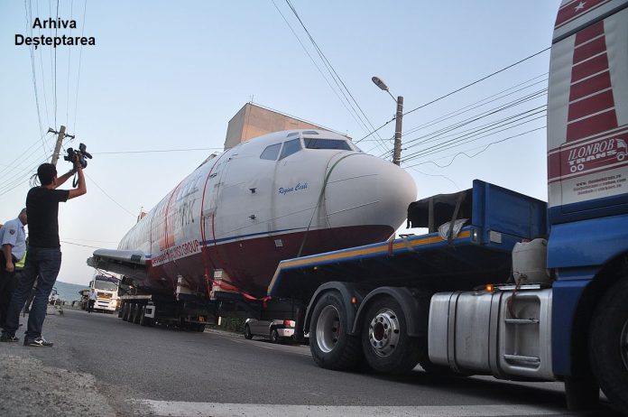Imaginea surprinsă în această fotografie unică din vara anului 2012 documentează un moment inedit pe străzile Bacăului: transportul unui avion dezafectat, încărcat pe un trailer uriaș, în drum spre o nouă viață – nu în aer, ci pe pământ, ca atracție turistică.