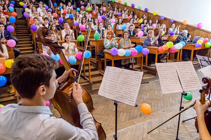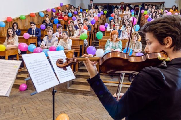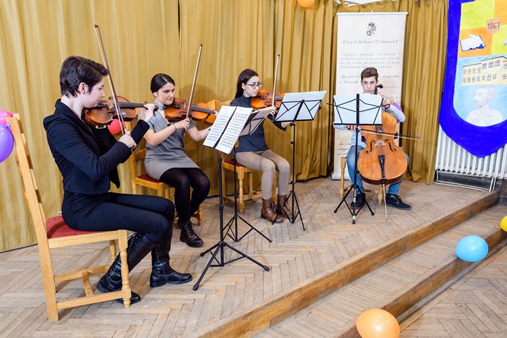Și pentru ca sărbătoarea să fie mai frumos și mai viu colorată, Consiliul Elevilor de la colegiul gazdă, a avut inițiativa de a invita partenerii de proiect de la Colegiul Național de Artă ” George Apostu”, alături de profesorii lor Daniela Bîrzu, coordonatoarea proiectului, criticul de artă Iulian Bucur și Codrin Stan, îndrumătorul cvartetului Blue.