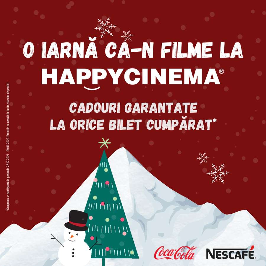 Biletele la film cumpărate în perioada 22 decembrie 2021 – 9 ianuarie 2022 sunt câștigătoare! Odată cu biletul, vei putea învârti roata norocului care ascunde unul dintre cadourile aflate deja pe lista ta de dorințe. Iar în această iarnă, Happy Cinema și prietenii de la Nescafe, Nestle și Coca Cola sunt cu adevarat generoși: peste 2500 de premii își așteaptă câştigătorii printre iubitorii de film.