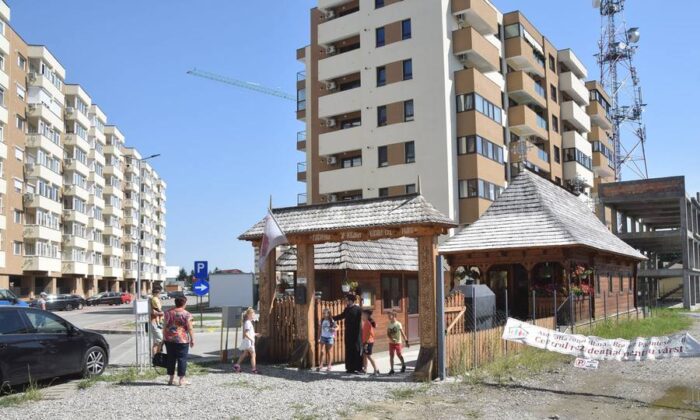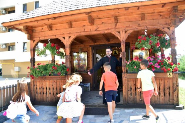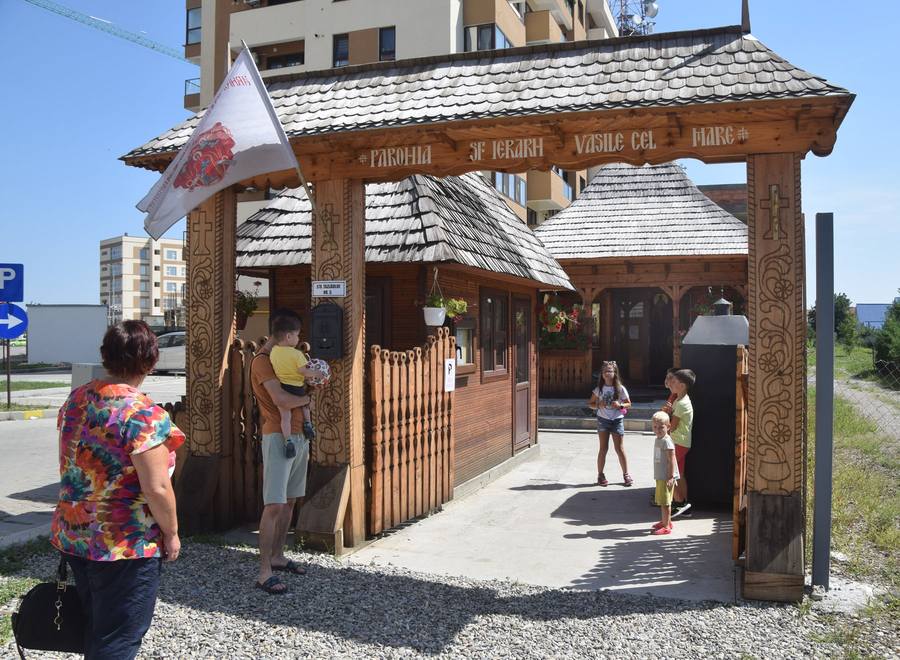 Pitită printre blocurile noi, zvelte, se pare că sunt adevărate versurile unui cântec. Dumnezeu preferă lemnul și spațiile mici, curtea fiind extrem de restrânsă. Aici, tânărul preot se străduiește, alături de credincioșii săi pe care îi păstorește, să facă o misiune specială de înzestrare, de înfrumusețare și de îngrijire a micuței biserici parohiale ce trebuie pregătită pentru sfințire în viitor, gândind în perspectivă și ridicarea unui ansamblu ecleziastic reprezentativ pentru această micuță comunitate ortodoxă aflată în formare.