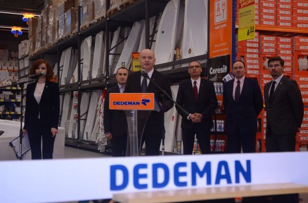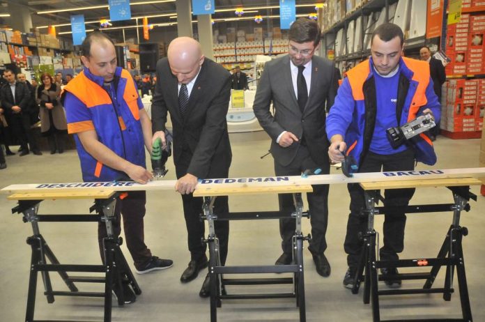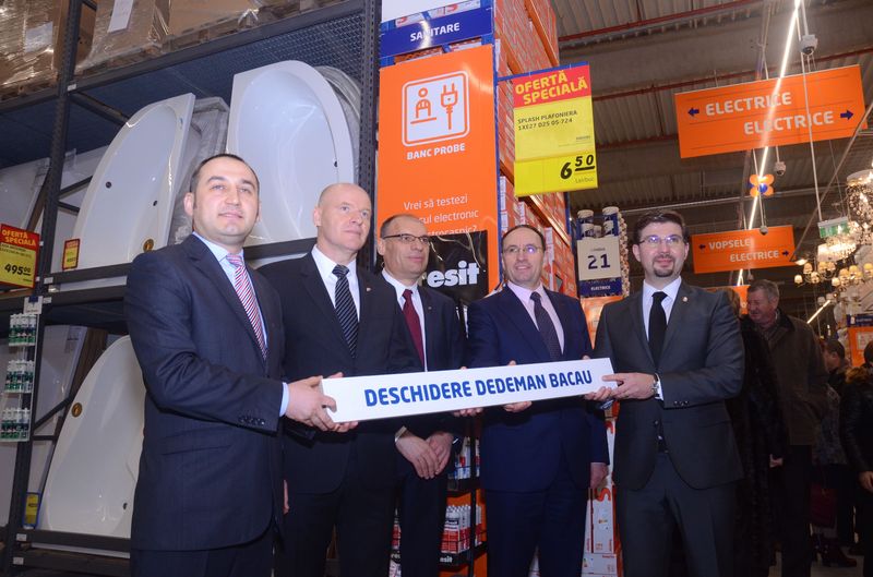 „Panglica” inaugurală a magazinului a fost tăiată, simbolic, de Dragoș Pavăl, președintele companiei Dedeman, și de primarul Cosmin Necula, care au folosit două fierăstraie mecanice, pentru că, în fapt, panglica era… de lemn. Nici nu se putea altfel într-un magazin de materiale de construcții. Cu acest prilej, Dragoș Pavăl nu a uitat să-i amintească pe cei peste 50 de furnizori din Bacău ai companiei Dedeman și chiar i-a nominalizat pe mulți dintre ei, dar nici pe cei care au construit noul magazin, circa 26 de firme, dintre care 16 sunt numai din Bacău, apoi pe cei care au așezat pe rafturi aproape 1.000 de tiruri de produse. Astfel, magazinul a fost finalizat în numai trei luni și jumătate.