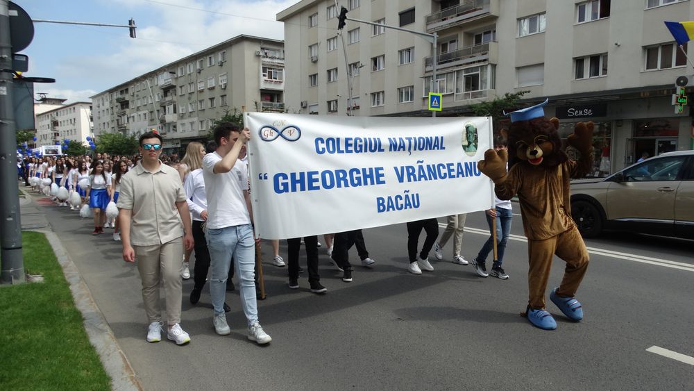 Centrul Bacăului a fost traversat de emoție, culoare și aplauze la pasul hotărât al Promoției 2025 de la Colegiul Național „Gheorghe Vrănceanu”. Cei 196 de absolvenți, împărțiți în 7 clase, au defilat în aplauzele trecătorilor, însoțiți de profesori, părinți și prieteni, marcând în mod festiv încheierea celor patru ani de liceu.