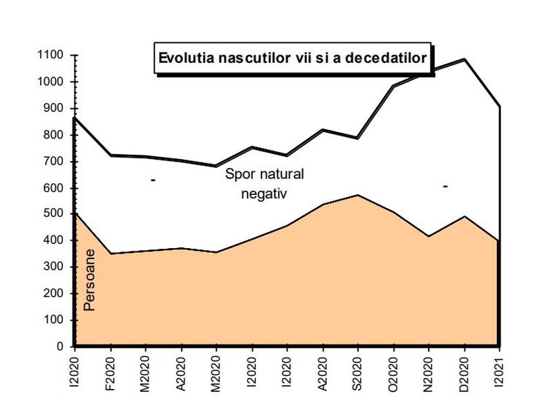 În luna ianuarie a acestui an, conform datelor Direcției Județene de Statistică Bacău, s-au născut în județ 399 de copii, față de 505 în luna ianuarie 2020. La decese, raportul este invers: 902 decedați în prima luna a acestui an și 858 decedați în perioada similară a anului trecut. Astfel, sporul natural (diferenta dintre nașteri și decese) a fost, în ianuarie 2021, de minus 503 persoane față de minus 353 în ianuarie trecut. Căsătoriile au continuat traiectoria descendentă: 141 față de 171, iar la divorțuri se menține același trend: 59 în ianuarie 2021 față de 69 în ianuarie 2020.
