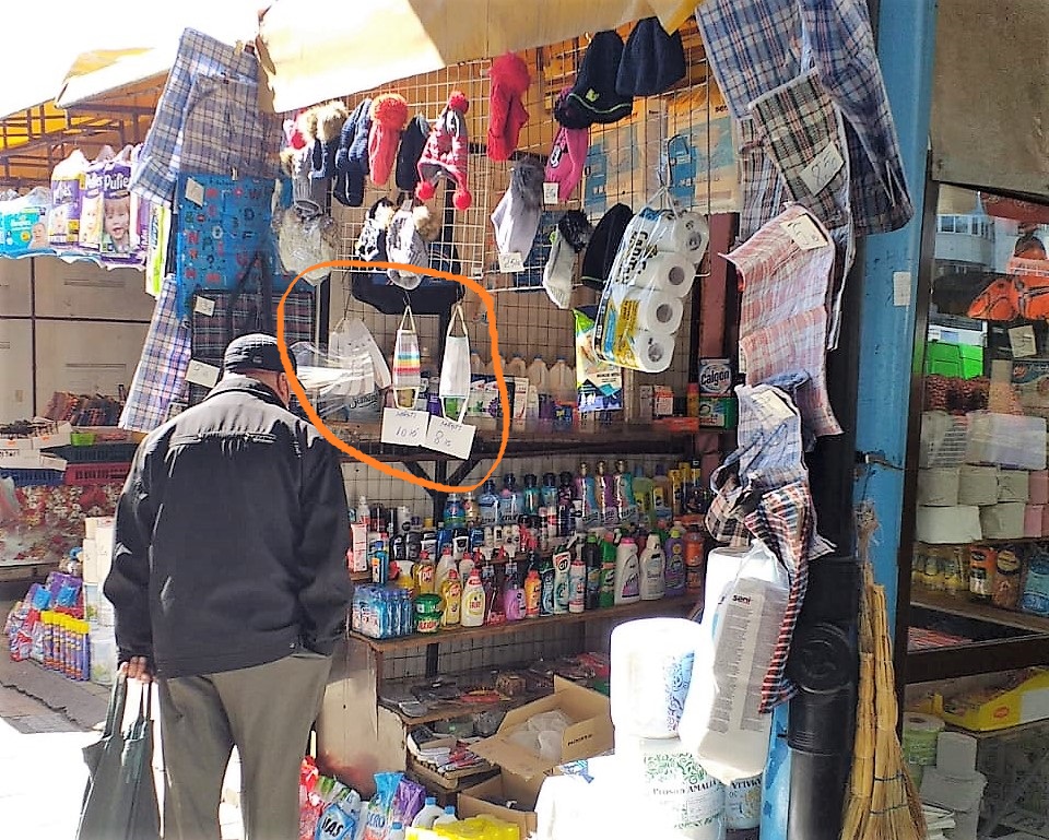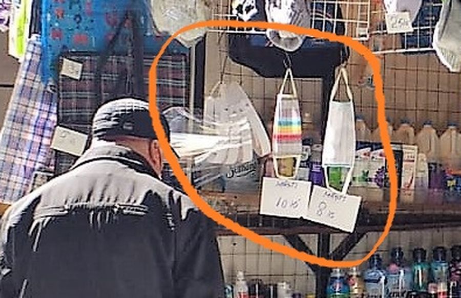 Tot la tarabele din Piața centrală se vând și măști de protecție împotriva contaminării cu SARS-Cov-2, la zece și la opt lei bucata.