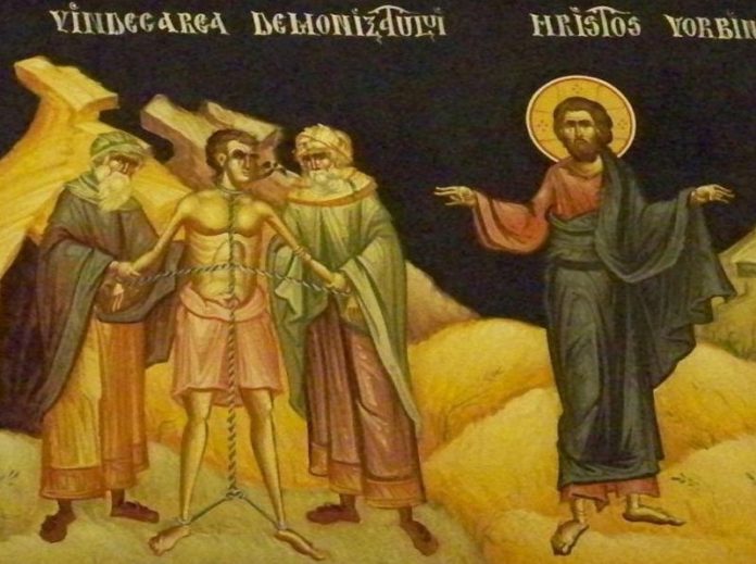 Prin izbavirea de demoni înţelegem că trebuie să-L primim pe Dumnezeu să stăpânească fiinţa noastră chiar dacă acest lucru presupune luptă şi efort duhovnicesc. Să-L acceptăm şi să-L iubim bineştiind că celui ce iubeşte nimic nu i se pare greu. Numai aşa „povara” Lui nu ne va mai părea grea. Cine va ajunge să cunoască taina iubirii Sale şi a aproapelui, nu numai că nu va mai putea trăi în veci fără El, dar îi va şi părea „jugul Lui bun şi povara Lui uşoară”(Matei 11, 30). Altfel, cine va voi să-şi cruţe viaţa, adică să şi-o menajeze şi să nu I-o jertfească Lui, şi-o va pierde (Mt. 10, 39).