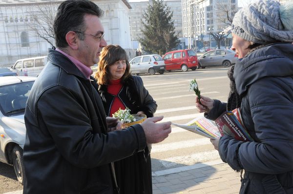Ghiocei si martisoare, urari sincere si zâmbete de incântata surpriza intr-o frumoasa dimineata ce lasa loc la visarile de primavara au fost darul DESTEPTARII pentru bacauani de 1 Martie. Nicoleta Timaru si Nelu Brosteanu au fost purtatorii mesajului catre cititorii, telespectatorii si ascultatorii Trustului Media ce si-a câstigat un binemeritat prim loc in increderea si preferintele bacauanilor. “Multumesc, mi-ati facut ziua minunata!”, “Sunteti deosebiti, ramâneti la fel de buni!”, “In voi avem incredere, iar acest gest spune totul despre valoarea si sensibilitatea voastra! Bravo!” – acestea sunt cuvintele care au fost pentru noi cea mai frumoasa confirmare a faptului ca munca jurnalistilor de la DESTEPTAREA este apreciata.