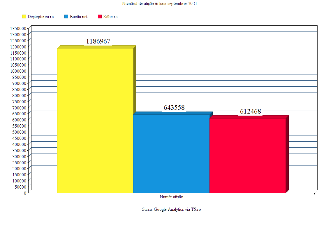 În ciuda sancțiunii primite de la Facebook, care ne-a limitat distribuirea articolelor, ca urmare a unor postări cu privire la pandemie, Deșteptarea.ro rămâne cel mai citit portal de știri din județ, cu aproape 1,2 milioane de afișări în luna septembrie, mai mult cu aproape jumătate față de competitori.
