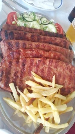 Neapărat trebuie gustată pleskavița, 450 de dinari (18 lei, 300 de grame), care se servește cu ceapă și cartofi prăjiți. Cartofii nu sunt congelați. Kilogramul de friptură (miel sau porc) este 2.000 de dinari (80 de lei), o salată de roșii este 150 de dinari (6 lei), micii costă 450 de dinari (18 lei) porția de 300 de grame. Servirea este rapidă iar chelnerii vorbesc românește.