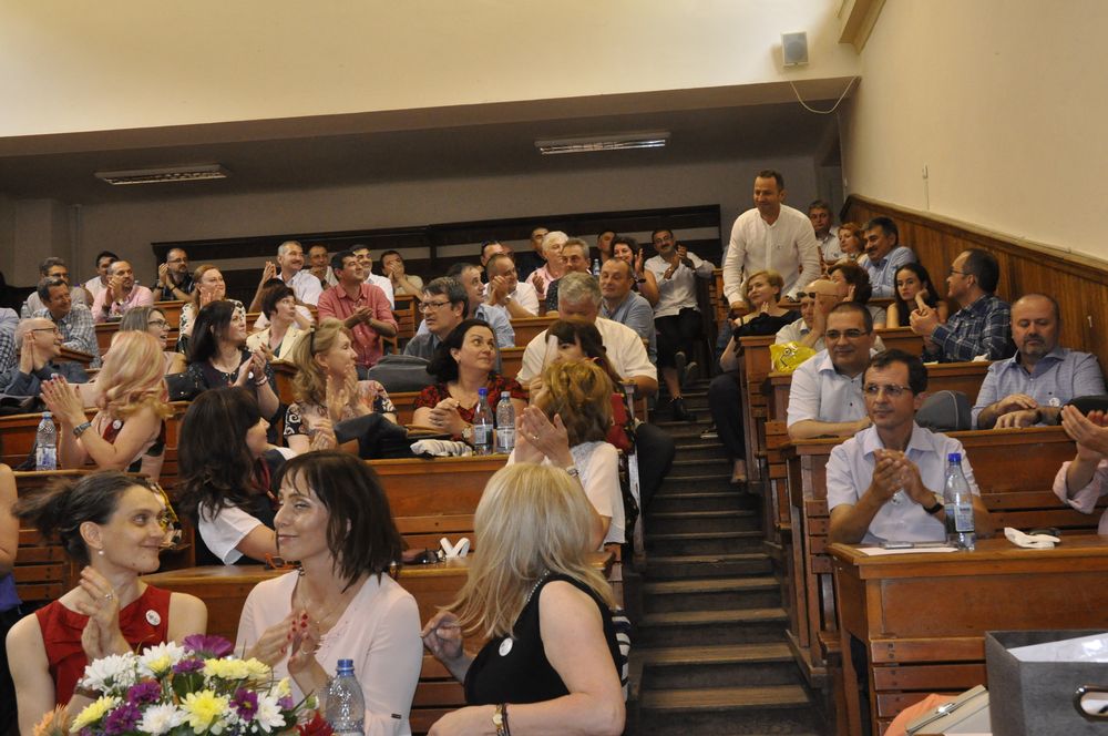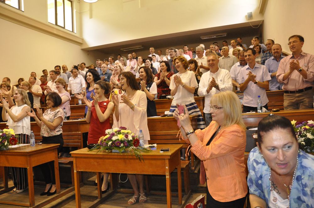 Amfiteatrul liceului s-a dovedit a fi neîncăpător pentru această generație, care nu și-a putut stăpâni emoțiile și lacrimile când și-au revăzut și profesorii. I-au primit alături de ei în ropote de aplauze. Omagiat și felicitat cu această ocazie a fost și prof. Jean Ciută, renumitul profesor de istorie pentru generații întregi „bacoviene”, care zilele acestea a împlinit 90 de ani. „Pentru contribuția de excepție adusă la dezvoltarea științelor istorice și pentru merite deosebite în promovarea și dezvoltarea învățământului băcăuan”, profesorului Jean Ciută i-a fost înmânată și o diplomă de excelență, din partea colegiului, dar și o plachetă aniversară, din partea generației bacoviene 1988.