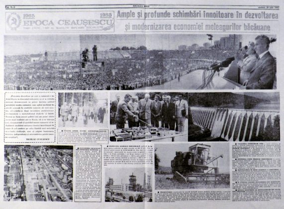 În 1971, Ceauşescu a vizitat principalele oraşe (Bacău, Oneşti, Comăneşti) şi s-a arătat încântat de „opera” oamenilor muncii. Nu a venit însoțit de tovarășa Elena, tocmai pentru că periplul a inclus și zonele afectate de inundații. A străbătut județul cu elicopterul, iar distanța dintre marile obiective industriale a parcurs-o într-un IMS fără prelată. Peste tot a fost primit cu flori, pâine şi sare, de băcăuani îmbrăcaţi în costume populare. Funcționau deja cele mai importante fabrici şi rafinării (Dărmăneşti şi Oneşti), care au mai fost ulterior retehnologizate. Industria extractivă a cărbunelui duduia, funcţionând la maximă capacitate.