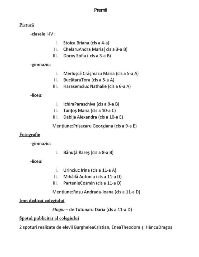 Directorii colegiului au premiat și o parte din partenerii de tradiție, inclusiv cotidianul Deșteptarea, „pentru promovarea initiativelor și acțiunilor colegiului în comunitatea locală”.
