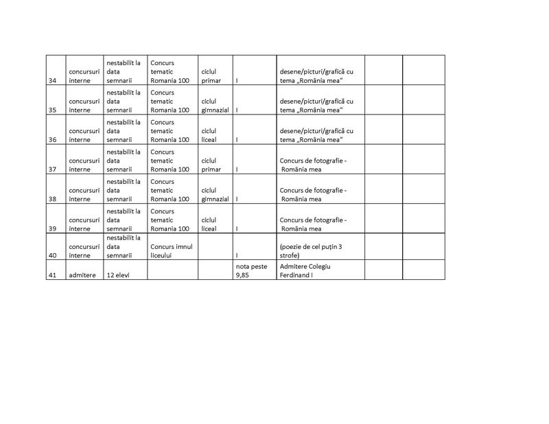 Spectacolul organizat cu acest prilej a cuprins, pe lângă cele 10 momente de evocare a românismului, şi momente artistice, de dans, interpretare vocală şi secvenţe de teatru istoric, ale căror protagonişti sunt tinerii artişti ai colegiului, momente de premiere a elevilor şi cadrelor didactice cu rezultate remarcabile în anul şcolar precedent. De asemenea, cu acest prilej, echipa organizatoare a lansat o serie de concursuri destinate elevilor şi cadrelor didactice – de pictură, fotografie, spot publicitar şi imn Ferdinand I, proiecte, materiale care au fost premiate pe scenă, de parteneri și sponsori.
