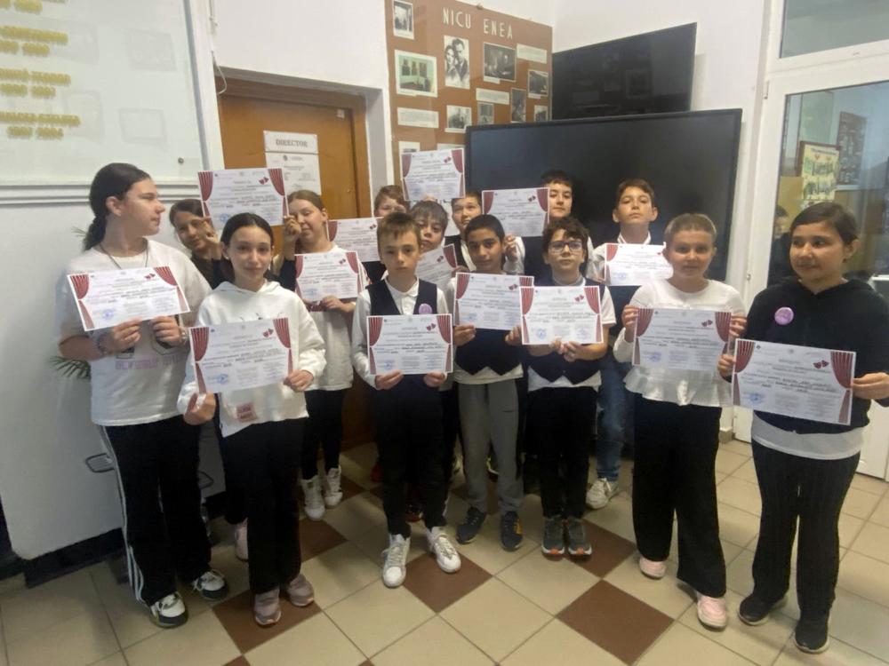 Toți participanții au fost recompensați cu diplome, în semn de apreciere pentru implicare, talent și efortul depus. Proiectul a oferit nu doar un cadru de competiție, ci și o oportunitate de colaborare între școli și de exprimare liberă a imaginației copiilor.