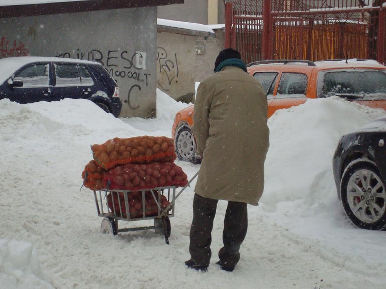 O scurta radiografie facuta dimineata prin oras, arata ca angajatii firmelor de distributie au ales sa care marfa cu spatele la clienti, decat sa ramana inzapeziti pe stradutele de legatura, ramase necuratate de zapada.