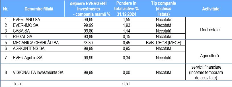 Ofertantul face parte din Grupul EVERGENT Investments S.A., cuprinzand urmatoarele 8 filiale:
