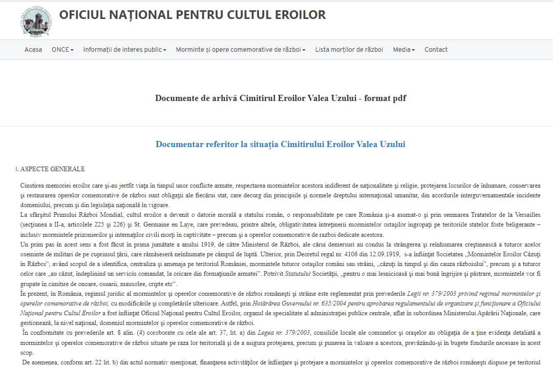 Documentarul despre Cimitirul Valea Uzului a reapărut pe site-ul Oficiului Național pentru Cultul Eroilor