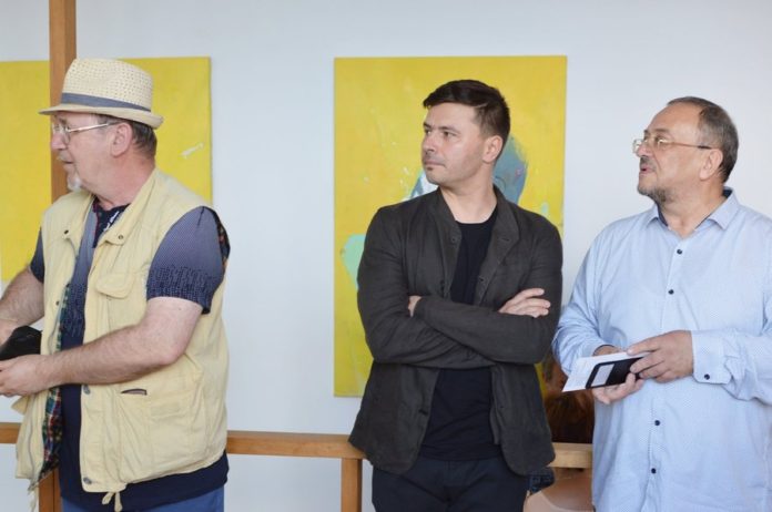 După ce am citit într-o revistă un dublu interviu cu cei doi artişti, de curând am avut ocazia să le admir creaţiile. Proiectul este interesant, a cărui paternitate a rămas în… pronunţare. Nefiind vorba de consecinţe materiale, să spunem că doar titlul generic al expoziţiei, „Un punct, două cercuri”, a venit de la Dragoş. Oricum, ideea de a reuni în aceeaşi expoziţie creaţiile a doi artişti, tată – Ioan Burlacu, şi fiu – Dragoş Burlacu, a fost a curatorului acesteia, Constantin Ţinteanu, patronul Galeriilor KARO (unde a avut loc vernisajul), critic de artă şi publicist. Interesul a fost mare, curiozitatea a umplut până la refuz micuţa şi cocheta galerie de pe str. Oituz, cu toate că, o parte din public cunoştea, din epoziţiile personale sau colective ale celor doi artişti, temele, maniera şi viziunea fiecăruia despre artă, în special despre arta contemporană. Artistul are nevoie de critic, criticul Constantin Ţinteanu se interpune discret între operă şi public. (Gh.B.)
