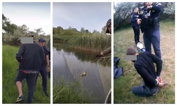 Persoanele în cauză au fost surprinse utilizând mai multe plase, cu o lungime totală de peste 100 de metri, și o ambarcațiune artizanală pentru pescuit ilegal.
