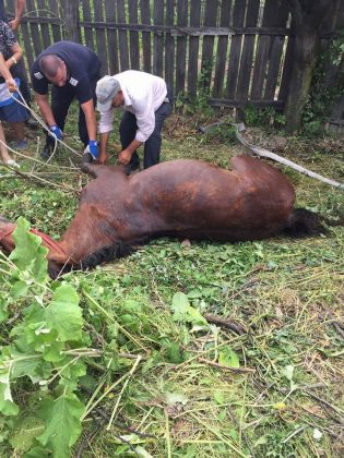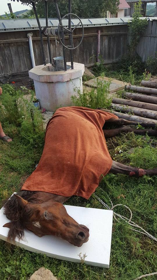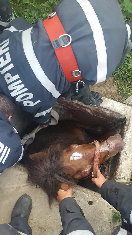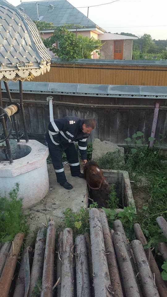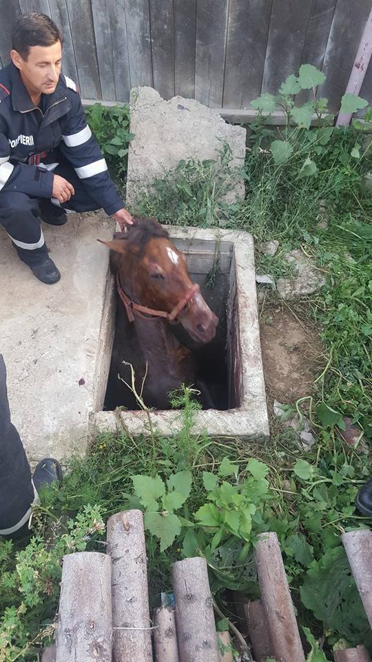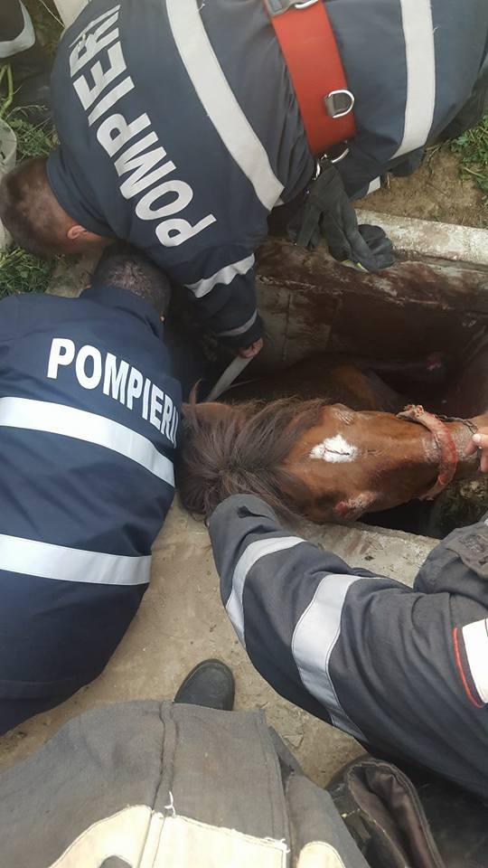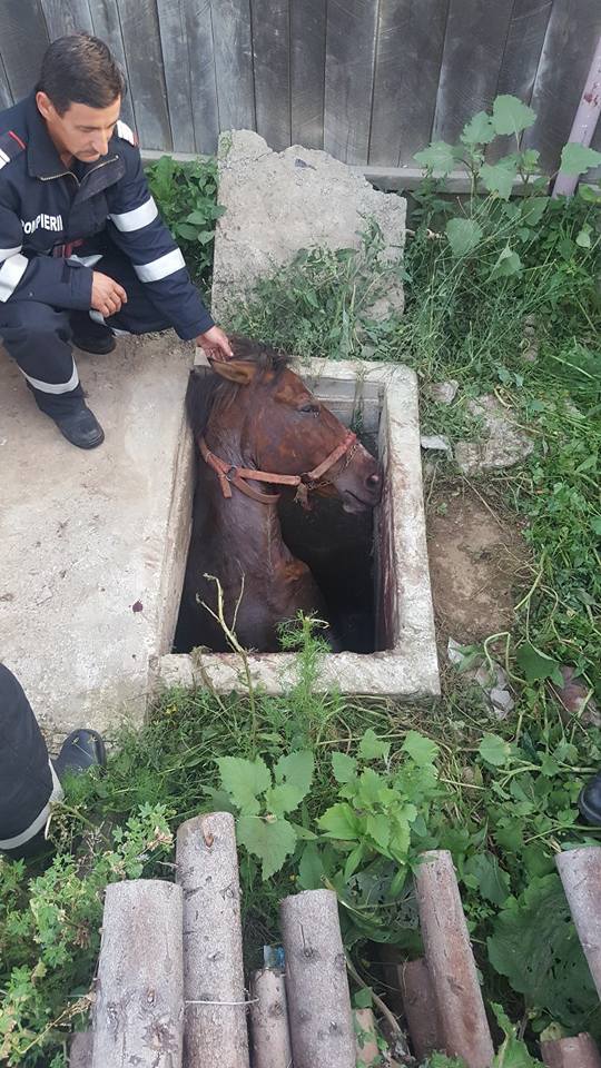 În această dimineață, un echipaj din cadrul Detașamentului de Pompieri Moinești a fost solicitat să intervină în comuna Berești Tazlău, sat Turluianu, pentru degajarea unei cabaline căzută într-o fântână (camin).