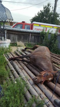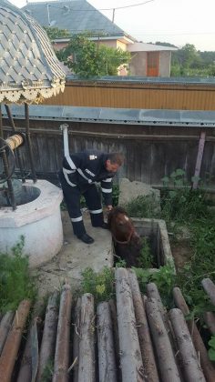 Animalul a fost scos de pompierii militari băcăuani cu ajutorul furtunurilor și a cordițelor.