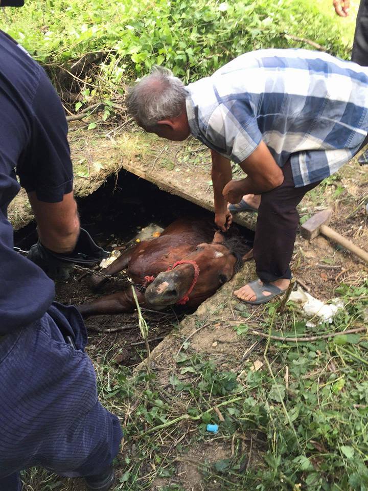 Un echipaj de salvatori din cadrul Detașamentului de Pompieri Bacău a intervenit în comuna Parava, sat Rădoaia, pentru salvarea unei cabaline căzută într-un beci dezafectat.
