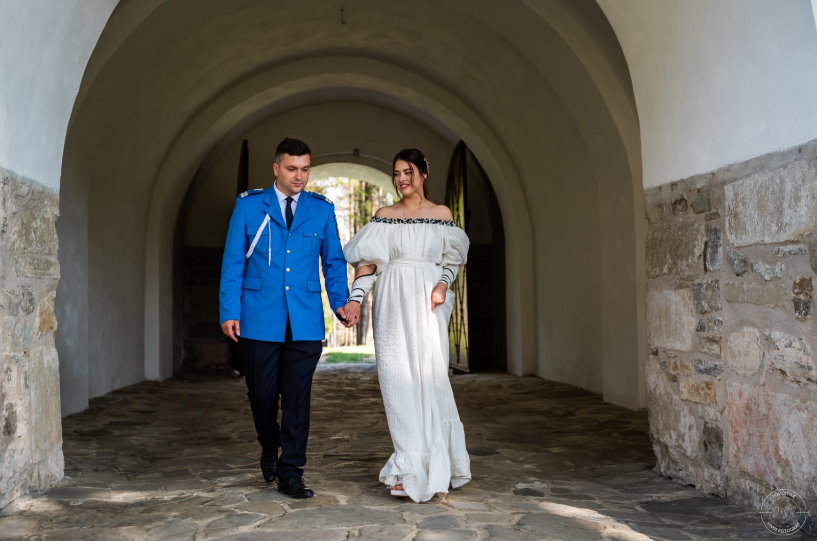 Cei doi îndrăgostiți și-au unit destinele îmbrăcați în haina de jandarm și mireasa, într-o rochie specială!