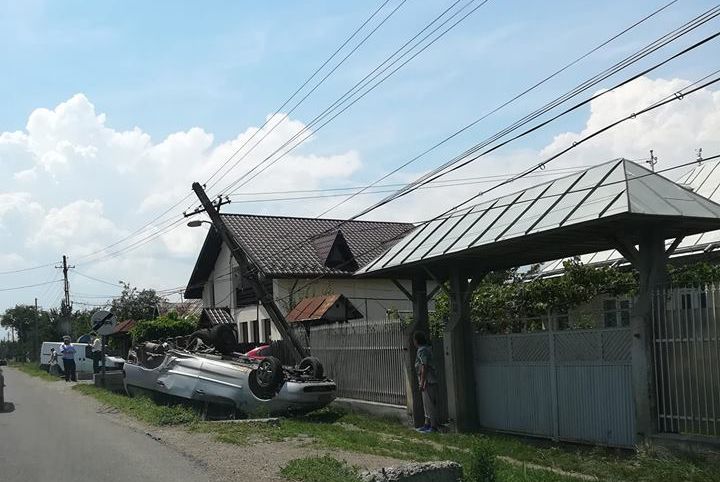 În urma impactului, unul dintre autoturisme s-a răsturnat în afara părții carosabile, lovind și un stâlp, iar două persoane au fost rănite.