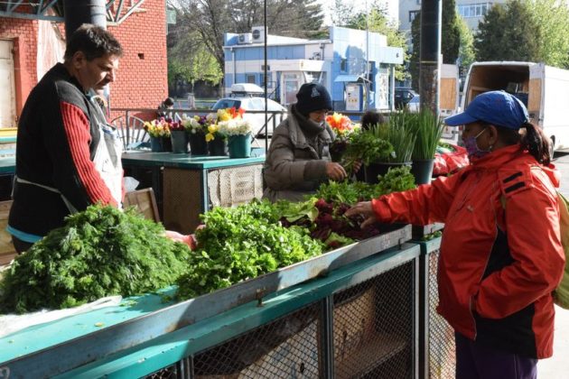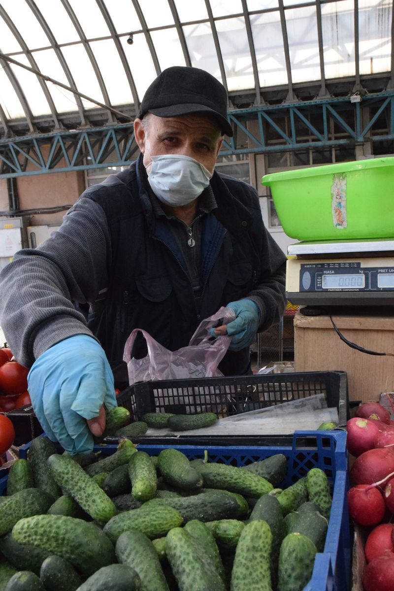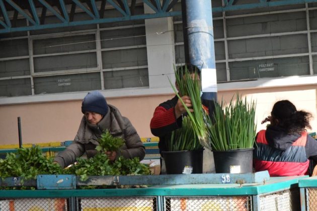 Piața Sud, luni dimineață. Ora nouă. Liniște. De parcă tot acel zbucium dinaintea Paștelui ar fi cerut răgaz. Printre cei care se bucură că nu a atins marja de vârstă se numără și Nea Vasile Ionașcu. Merge pe 62 de ani. Cine nu-l cunoaște? „Nu mai merge vânzarea cum mergea. Uite! Vine omu’ și-mi cere trei căței de usturoi. Nici măcar o căpățână. Eu în comerț am lucrat de când mă știu. În 1988 m-am apucat de croitorie. Făceam ciorapi din aia tricotați, rotunzi. De prin 2000 am început să vând la piață. Acuma, cu gripa asta, se simte. Nu sunt cumpărători. Pe ăia de la țară nu-i mai lasă să vină, să cumpere. Ce, ei la țară au acum ridichi, roșii, ceapă verde? Nu au! Vânzători suntem tot aia. Ne știm. Cu familia e bine. Mi-e dor de nepoți, că nu mă pot duce la ei.