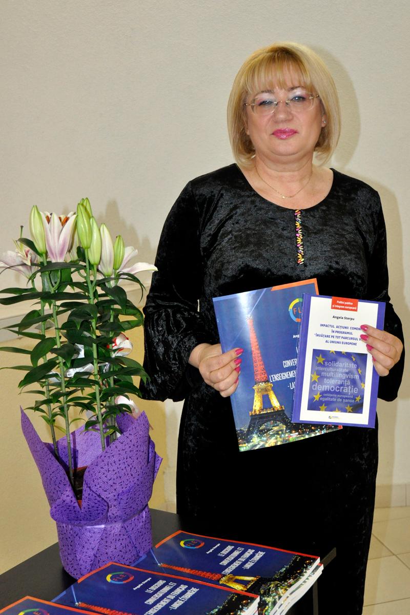Prima carte, intitulată „Impactul acțiunii Comenius în Programul «Învățare pe tot parcursul vieții» al Uniunii Europene”, vorbește despre solidaritate, interculturalitate, multilingvism, toleranță, democrație, cetățenie europeană și egalitate de șanse în tot ce înseamnă accesarea de fonduri europene în educație. Un volum de colecție, a cărui referent științific este prof. univ. dr. Gabriela Carmen Pascariu. O lucrare în care prof. Angela Sterpu scrie despre schimburile lingvistice și culturale pe care le-au oferit aceste programe europene în sistemului de învățământ românesc, în speță celui băcăuan, urmare a scopului declarat al Comisiei Europene de a susține financiar dezvoltarea cooperării în educație și formarea profesională atât a profesorilor, cât și a elevilor.
