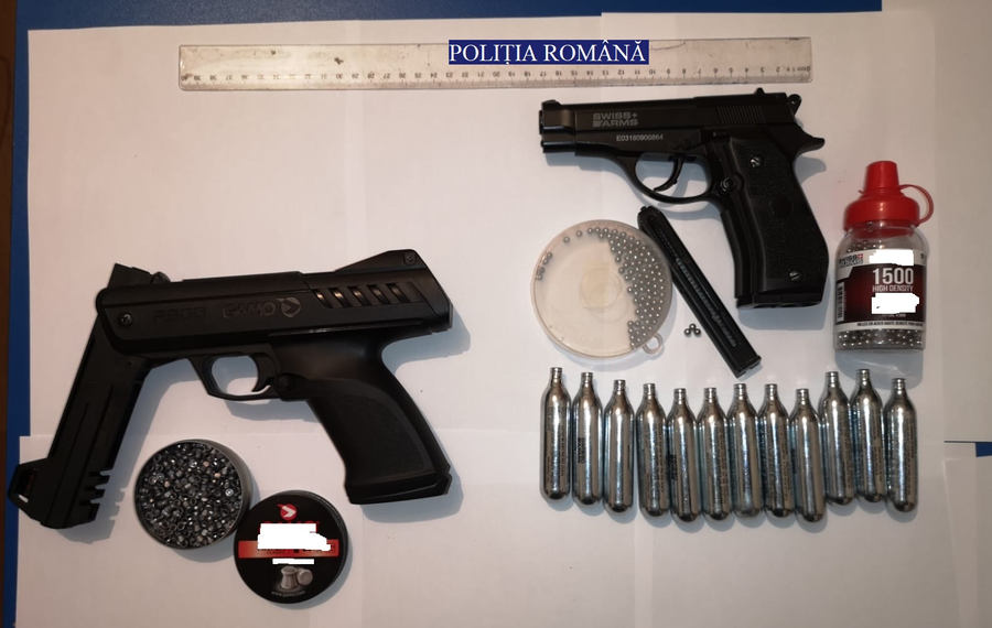 Din verificările poliţiştilor a rezultat că acesta mai avea asupra sa 10 butelii de gaz, aproximativ 200 g alice metalice şi 313 diaboluri.