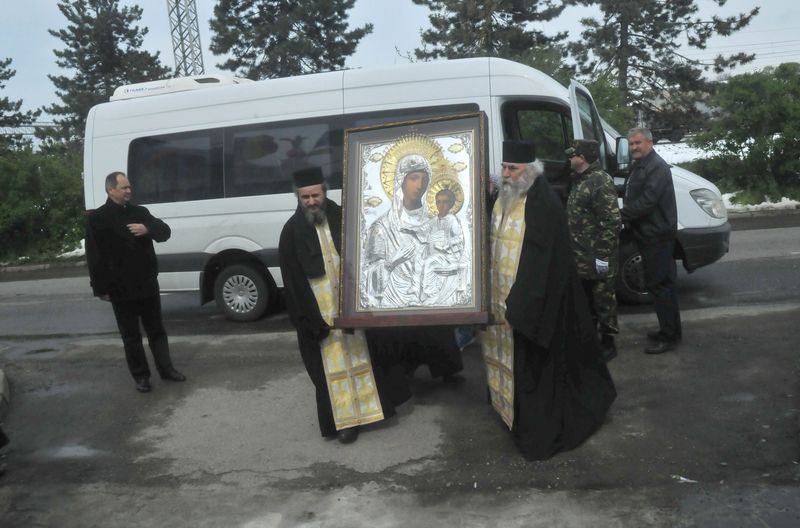 De vineri, 21 aprilie, zestrea iconografică a Bisericii militare „Sf. Gheorghe şi Eroii Neamului” s-a îmbogăţit cu o nouă transfigurare a Sfintei Fecioare prin sosirea Icoanei Maicii Domnului Prodromiţa de la schitul românesc Prodromu de pe Sfântul Munte Athos. Această reproducere a binecunoscutei icoane a venit însoţită de un grup de monahi care, prin prezenţa lor, au adus binecuvântarea athonită peste întregul oraş.