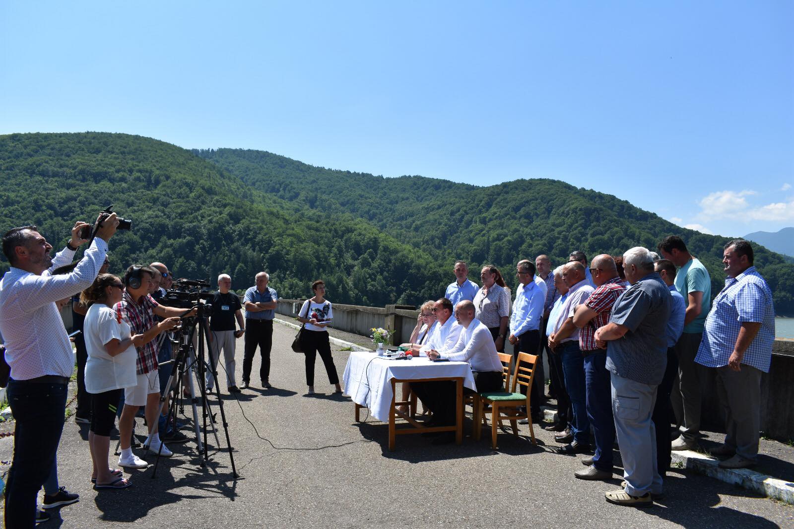 Al doilea popas al parlamentarilor și reprezentanților Consiliului Județean a fost lângă barajul de la Valea Uzului, tot pentru semnarea unui contract important și îndelung așteptat.