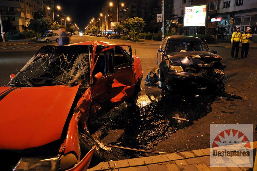Martorii sustin ca, in jurul orei 4.00, un Cielo rosu, care venea dinspre Insula de Agrement, nu s-a asigurat cand a facut virajul la stanga spre Biserica Precista. In acelasi timp, dinspre Tic-Tac venea un Volskwagen Passat, care a lovit in plin autoturismul Cielo.