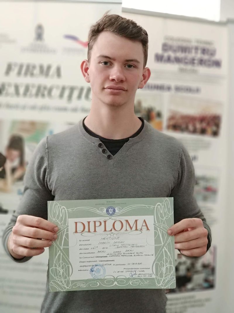 De apreciat este că la proba practică a obţinut 100 puncte, ceea ce demonstrează că e un bun practician şi că are abilităţi de proiectare asistată de calculator şi de măsurări tehnice. Mihail Costache este pregătit de profesoarele Lavinia Buşcă, Carmen Cristea şi Mihaela Cosmescu. Și Damian Dobrin (clasa a XI-a P2, profesională) a avut, de asemenea, cel mai mare punctaj la proba practică la Concursul Național pe meserii (care a avut loc tot la Slatina, în aceeași perioadă), a finalizat primul proba practică la mecanic auto şi a fost felicitat de evaluatori. A muncit şi a obţinut 89,25 puncte, care i-a adus o menţiune, din 42 de concurenţi. Damian Dobrin este pregătit de profesorii: Mihai Gurămultă, Maria Bîrgu, Carmen Cristea, Ioan Moisă şi Costică Parîng.