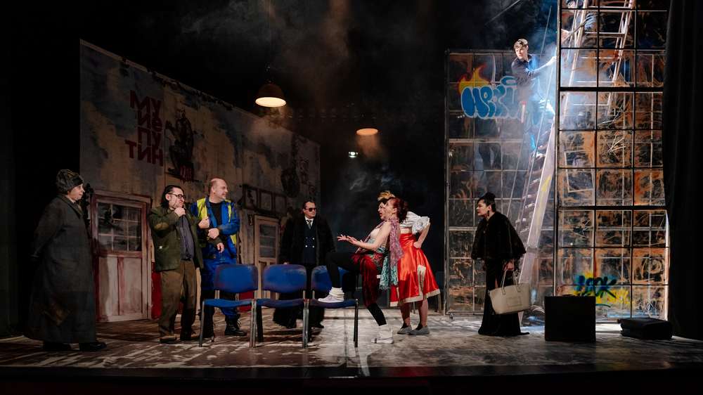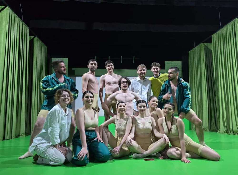 Sunt multe elemente de mișcare, momente de dans în spectacol, bine gândite și lucrate cu multă dedicare de talentata coregrafa Alice Veliche, în armonie cu viziunea regizorală. Una care pune în valoare profundul adevăr uman din textul tragicomic al lui Galin, pe care Octavian Jighirgiu l-a citit dintr-o „perspectivă duioasă, tandră”, într-un spectacol viu, actual (sunt și trimiteri la dictatură, la vremurile astea de războaie, sus, în partea stângă a decorului fiind o caricatură a lui Putin cu înscrisul, în rusă, de pe celebra plăcuță de înmatriculare din Suedia) care-ți transmite o stare de bine, de încredere că orice se poate rezolva cu înțelegere pentru dorința oamenilor de a trăi în armonie, în pace. Dansul dezlănțuit din finalul reprezentației (pe cântecul lui Goran Bregović, „Kalashnikov”), mi l-a amintit pe cel al lui Zorba, când s-a prăbușit construcția. Dansul alungă disperarea și aduce bucurie. „Audiția” este un spectacol plin de căldură, de emoții, cu întâmplări de-a râsu’-plânsu’, așa cum e viața cel mai adesea.