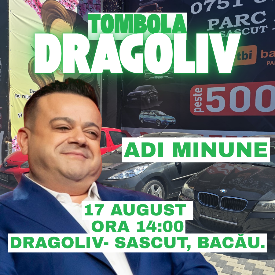 SASCUT, BACĂU – Unul dintre cele mai cunoscute parcuri auto din România, Dragoliv, organizează pe 17 august 2025 un eveniment unic dedicat comunității și clienților săi. Cu ocazia acestui moment special, Dragoliv va oferi 3 autoturisme complet gratuit, în cadrul unei tombole publice desfășurate chiar în incinta parcului din Sascut, județul Bacău.