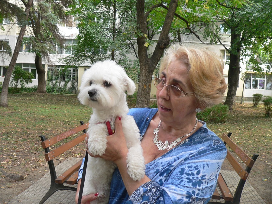 Pe cel pe care îl vedeţi îl cheamă Snowball (Bulgăraş de zăpadă), pe Snowbi, pe bulgăraşul nostru, îl am de doi ani, este născut pe 24 noiembrie 2015, l-a primit cadou Nicoleta, fiica mea, îl iubim amândouă la fel de mult, iar el are puterea să-şi împartă dragostea. Când aude numele Nicoleta sare imediat, o caută din priviri. Vedeţi! Un animăluţ de casă, de companie, fie căţel, pisică, are şi rol terapeutic, atât pentru tine cât şi pentru el. Noi ieşim des la plimbare, pentru socializare cu alţi căţei, cu copiii, tu faci mişcare, socializezi, la rândul tău cu alţi proprietari de animale, eu mă duc la spectacole în aer liber cu el, lui Snowbi îi place muzica, muzica mai lentă, aţi văzut ce atent era la spectacol, l-a îndrăgit şi Corina Chiriac, l-a mângâiat, mi-a făcut semn să ne întâlnim după spectacol, l-a îndrăgit din prima, a fost reciprocă dragostea. Am vorbit foarte multe cu îndrăgita cântăreaţă, mi-a oferit o carte, o carte autobiografică. Mie îmi place să citesc, iar Snowbi stă cuminte lângă mine. Aud pe unii spunând că un animal în casă este o povară. Nu, nu este niciodată. Dacă iei un animal şi simţi că este o povară, nu-l lua, nu te ataşa.