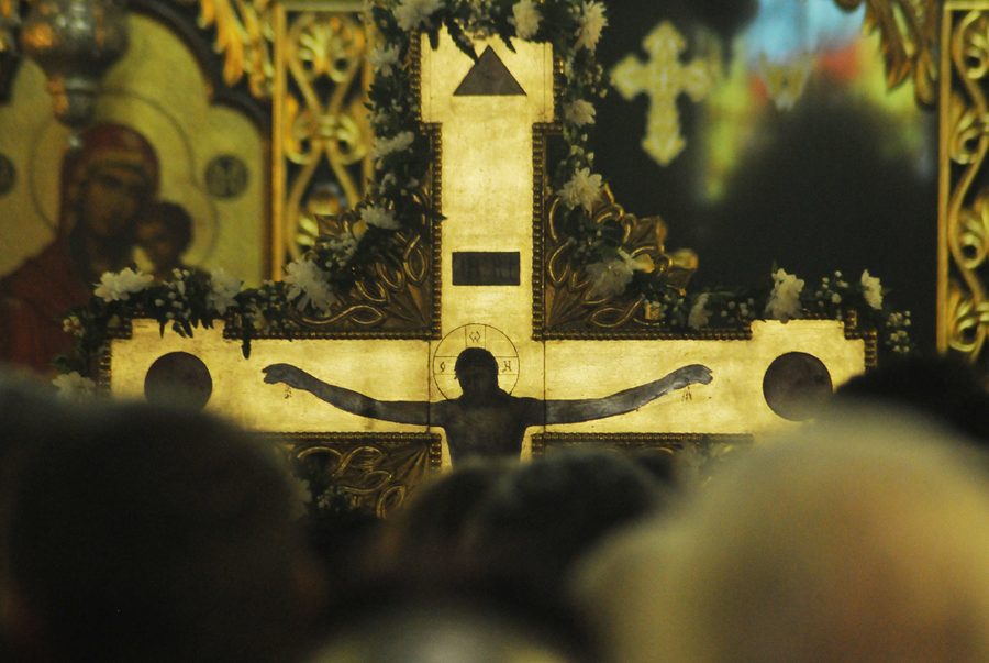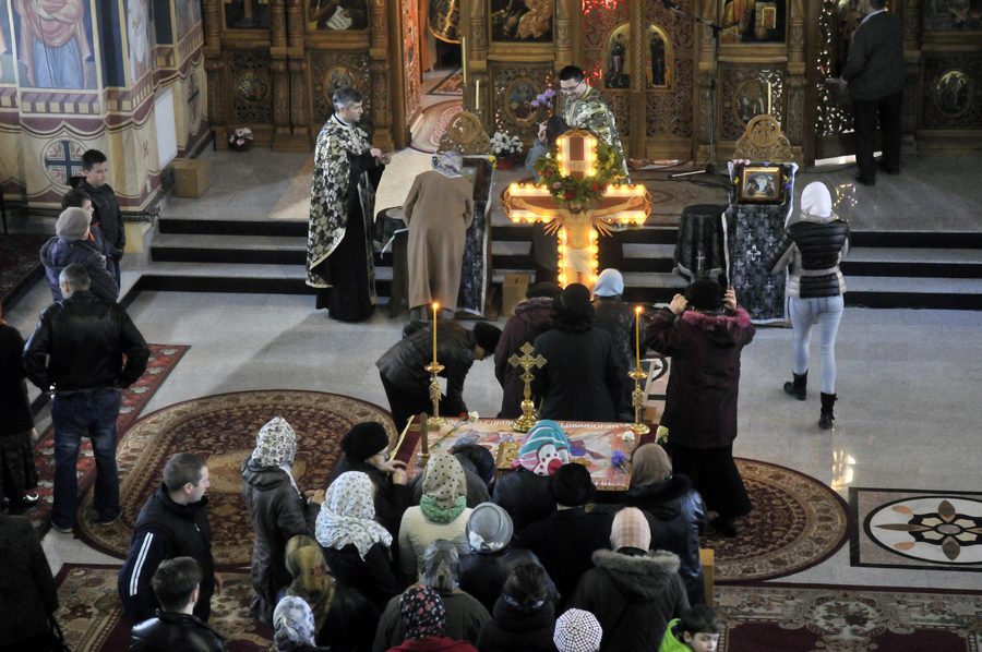 Începând cu Duminica Floriilor, în bisericile creştin-ortodoxe se săvârşesc Deniile, care înseamnă privegheri sau slujbe de seară. Acestea sunt, în fapt, slujbe de dimineaţă săvârşite în seara precedentă, ca o formă de priveghere prelungită. Deniile de luni, marţi şi miercuri pregătesc credincioşii pentru înţelegerea sacrificiului prin care Mântuitorul Iisus Hristos reaşează pe om în comuniune cu Dumnezeu. În Joia Mare, se săvârşeşte Denia celor 12 evanghelii prin care sunt evocate patru evenimente deosebite din viaţa Mântuitorului: spălarea picioarelor ucenicilor, ca pildă de smerenie, Cina cea de Taină prin care Mântuitorul a instituit Taina Sfintei Euharistii, rugăciunea arhierească şi începutul pătimirilor, prin vinderea Domnului de către Iuda. La finalul acestei zile, preotul iese din altar purtând în spate Sfânta Cruce pe care o va aşeza în naosul bisericii zicând „Astăzi a fost spânzurat pe lemn Cel ce a spânzurat pământul pe ape”. În Vinerea Mare, în biserici, preoţii scot din altar Sfântul Epitaf, sau Sfântul Aer. Acesta este o pânză de in sau de mătase, pe care este brodată ori pictată Icoana Punerii în mormânt a Mântuitorului. Sfântul Epitaf este pus pe o masă, în faţa Sfintei Cruci, astfel ca preoţii şi credincioşii să poată trece pe sub el, trecere care reprezintă coborârea în Iad a lui Iisus Hristos. Cu puţin timp înainte de apusul soarelui, credincioşii se adună în biserică unde se va săvârşi Denia Prohodului Domnului, slujba de înmormântare a Mântuitorului. Prohodul este împărţit, ca structură, în trei părţi, având în total 176 de strofe. Versuri precum „În mormânt, Viaţă/Pus ai fost Hristoase…” îmbracă biserica precum o tânguire care, treptat, se transformă într-un cântec de biruinţă asupra morţii. După aceea, preoţii şi credincioşii, cu lumânări aprinse în mâini, înconjoară biserica purtând Sfântul Epitaf, simbolizând înmormântarea Mântuitorului. La final, lumânările sunt puse la mormintele celor răposaţi ca un preambul la Lumina Învierii. În Sfânta şi Marea Sâmbătă este prăznuită îngroparea lui Iisus cu trupul şi pogorârea la Iad cu sufletul. Sâmbătă seara, începe slujba Învierii Domnului. În ultimii ani, se obişnuieşte ca Lumina Sfântă să fie adusă credincioşilor băcăuani pe calea aerului, de la Biserica Sfântului Mormânt din Ierusalim.
