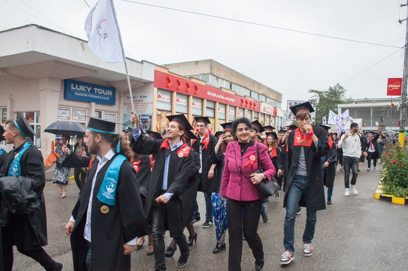 Tristetea, dezamagirea si scârba pe care unii competitori au aruncat-o in sufletele buhusenilor, prin discursul lor electoral penibil si mizerabil, au fost aruncate in aer de superba parada a celor aproape 140 de liceeni buhuseni, care, costumati in robe, sub ochii si in aplauzele a mii (sic!) de buhuseni, si-au luat ramas-bun de la scoala, scandând/cântând pe strazile orasului.
