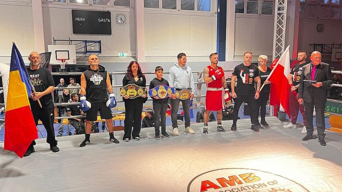 The small Romanian fan section erupted in cheers as Dulhac proudly wore one belt around his waist and two over his shoulders. It’s likely that no one in Master Boxing has ever accumulated as many belts as Dragoș Dulhac!