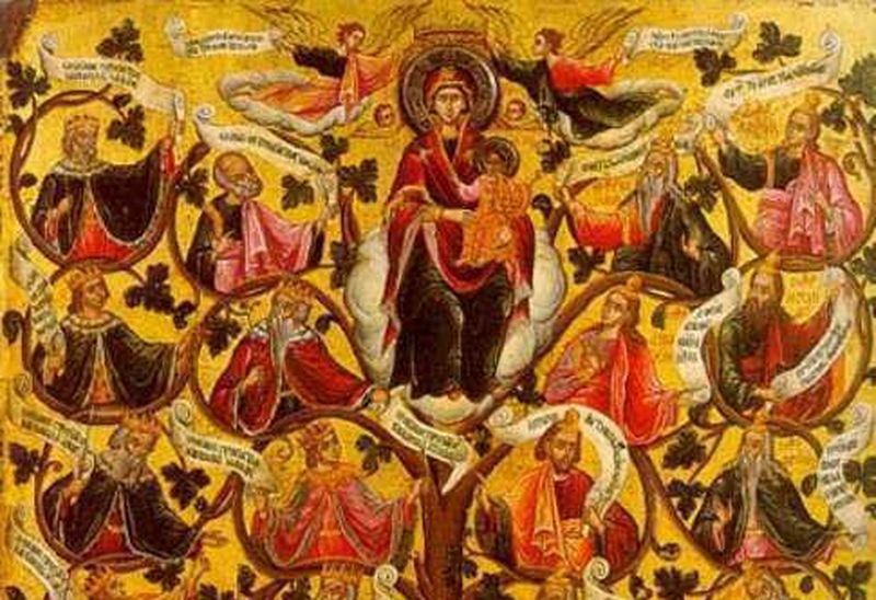 În duminica dinaintea Naşterii Domnului se citeşte primul capitol din Evanghelia de la Matei. Este un catalog al strămoşilor lui Hristos. Drept tată îl are pe Tatăl cel Ceresc. Dar odată ce s-a arătat pe pământ ca om desăvârşit în afară de păcat, înseamnă că a purtat trup omenesc dupa Preasfânta Născătoare de Dumnezeu. Şi s-a născut într-un mod supranatural. Tată pământesc nu are, ci doar mamă. Mama Sa este Preasfânta (Panaghia) noastră. Iarăşi, părinţi ai Preasfintei sunt Ioachim şi Ana iar părinţii lui Ioachim şi ai Anei sunt alţii şi aşa mai departe. În felul acesta se formează un mare lanţ de strămoşi.