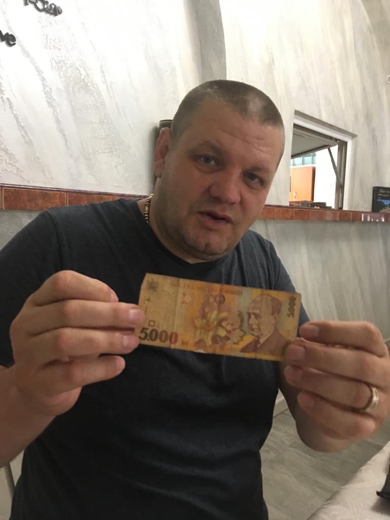 Ciprian Ciocan își deschide portofelul și, dintr-un buzunar cu fermoar, scoate o hârtie de 5000 lei ieșită demult din uz pe care o ține împăturită cu grijă în patru.
