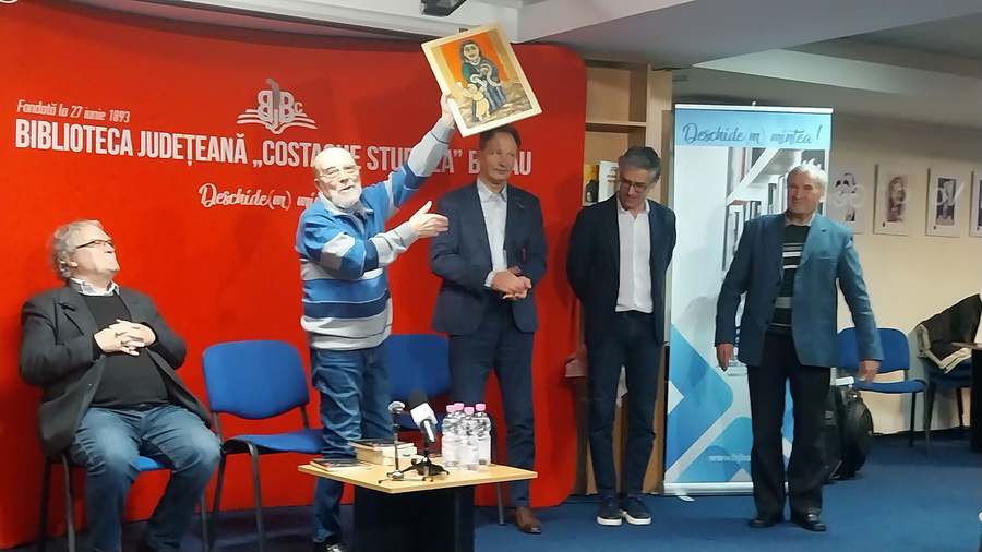 ”Sunt destul de intimidat de prezența dumneavoastră, dar sper să-mi treacă. Vă mulțumesc foarte mult, sunt extrem de flatat, dar să știți că nu mă simt bine, în fața dumneavoastră, în general nu caut astfel de… N-am mai făcut o lansare de carte, o întâlnire cu posibilii mei cititori, de vreo 30 de ani”, a spus autorul ”Patimilor după Bacovia”, pentru care întâlnirea a fost, în esență, manifestarea unei bucurii, bucuria de a aniversa, alături de prieteni, prinși în mrejele poeziei, ca stare de a fi, împlinirea, pe 10 noiembrie 2024, a vârstei de 90 de ani.
