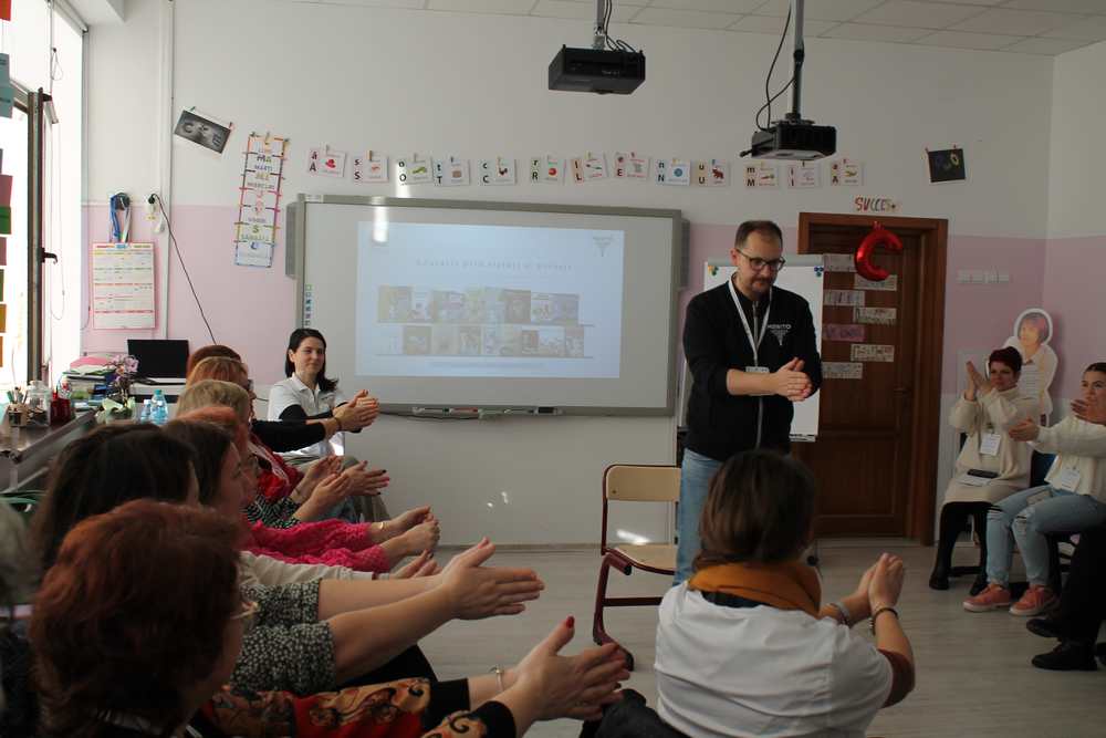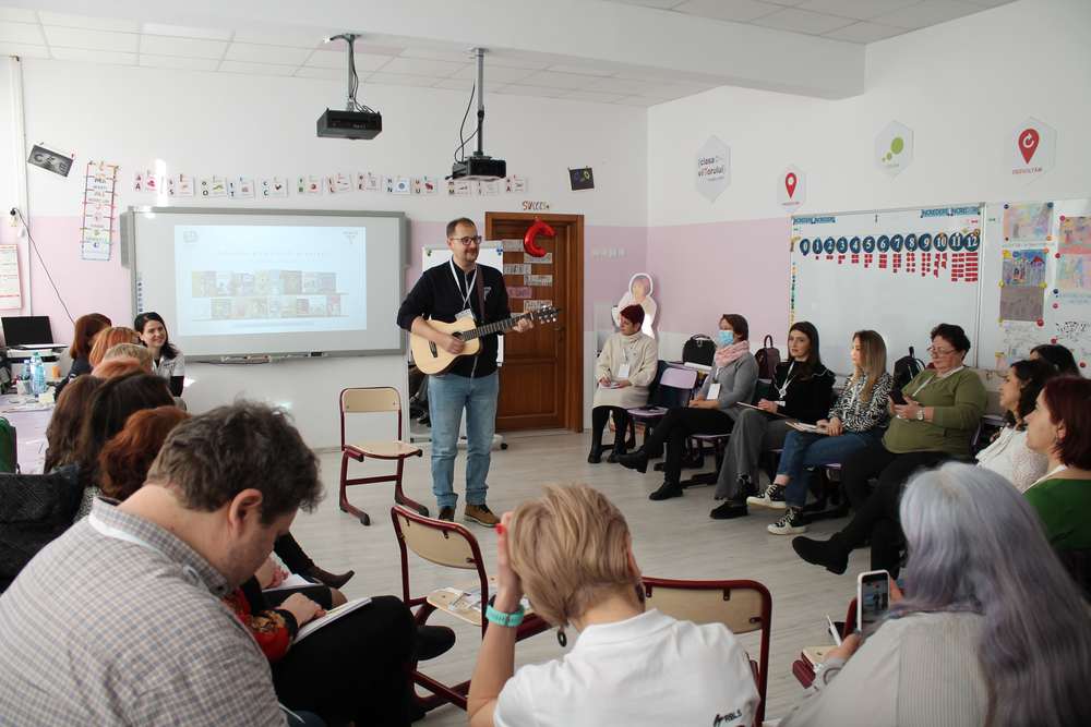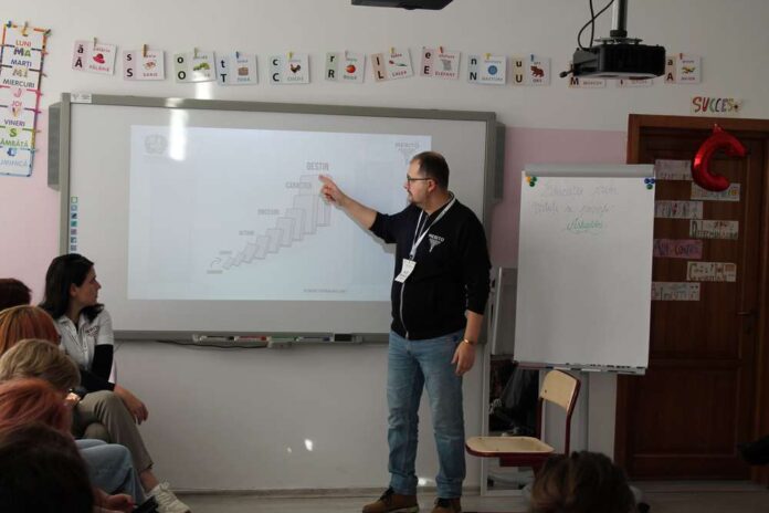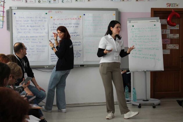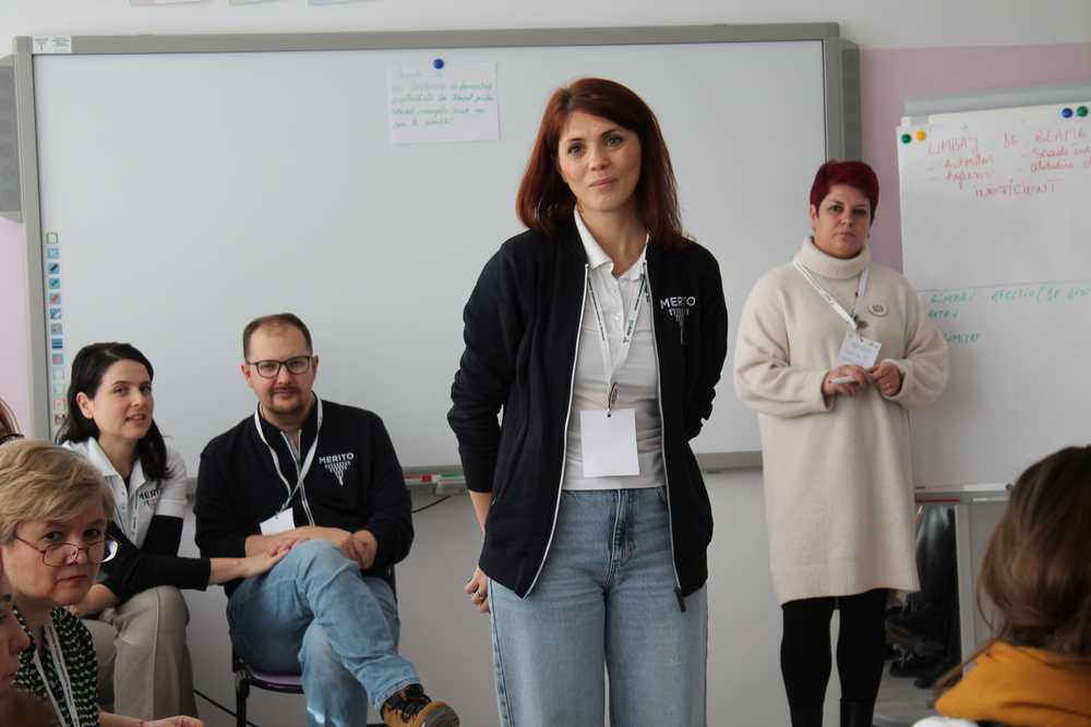Programul evenimentului a inclus, în cea de-a doua zi a Forumului MERITO Moldova, la Școala Gimnazială ”Al.I.Cuza”, ateliere pe teme de actualitate, la care au luat parte profesori din diferite niveluri de învățământ. Cel la care am asistat eu a fost atelierul de “Educație prin Virtuți și Povești”, susținut de Anamaria şi Alec Blenche, co-fondatori şi facilitatori EduVit, şi Adina Mătieş, consultant şi antreprenor în educaţie.